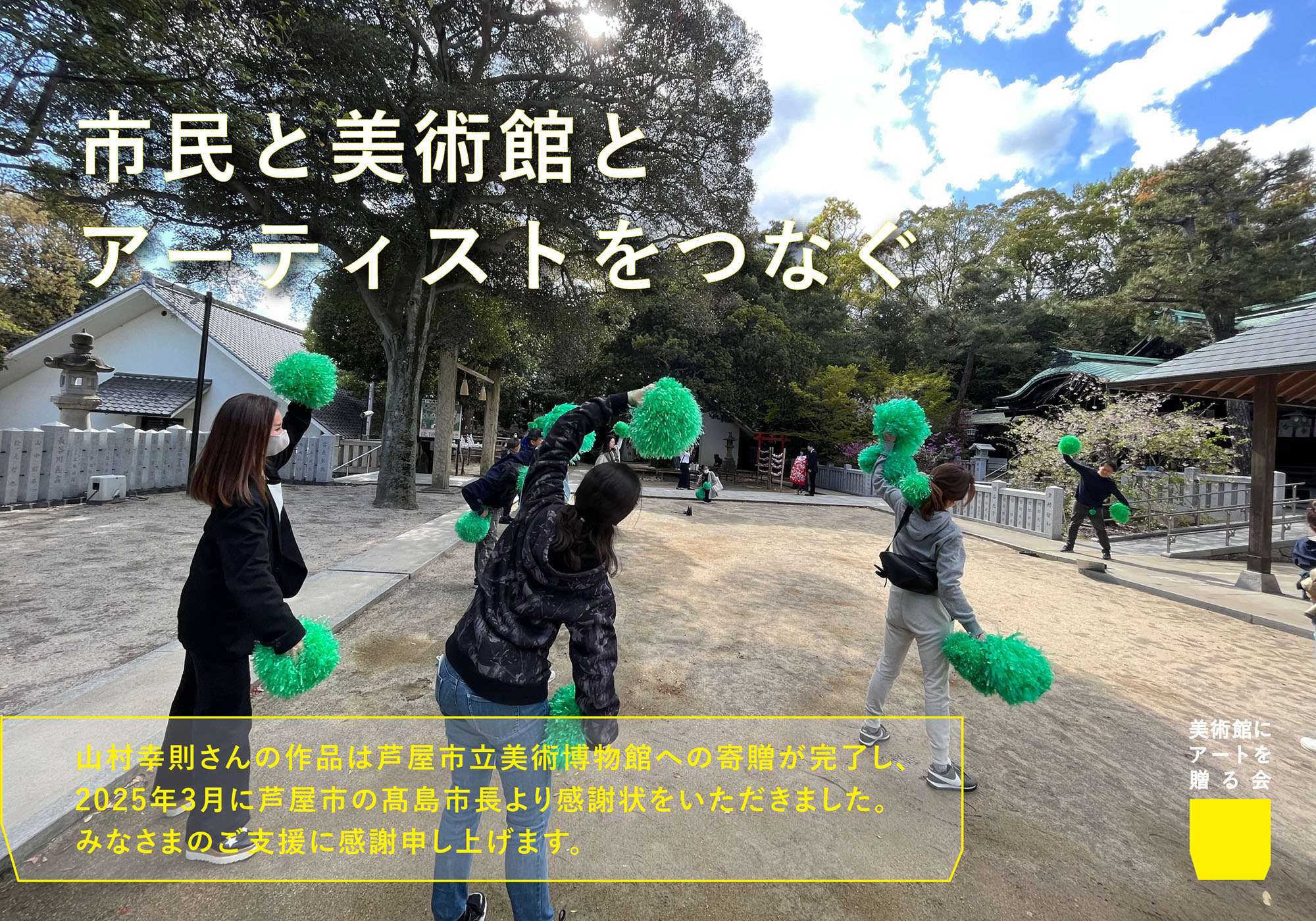 第6弾寄贈プロジェクト『山村幸則さんの作品を美術館に贈りましょう』クラウドファンディングによるご支援の募集がスタートしました。詳しくはこちらのMotion Galleryのプロジェクトページよりご支援方法やリターン内容等をご確認ください。 |